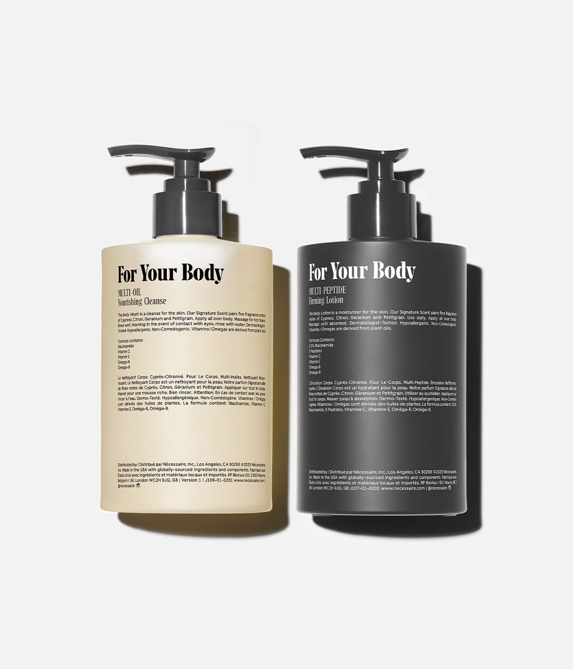The Body Duo features two (2) best-selling body treatments for nourished, moisturized, and firm skin. Packed with signature actives – Luxe Rich Oils (Marula / Meadowfoam / Cacay), Vitamins, Omegas, Niacinamide, and Peptides – to better skin neck down. Our signature scent of Eucalyptus pairs pure Essential Eucalyptus Oil with Fine Fragrance notes of Siberian Fir, Lavender, and Ginger. Dermatologist-Tested. Hypoallergenic. Non-Comedogenic. Vegan. While supplies last.